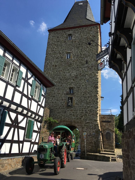 Hoch auf dem „grünen“ Wagen erkundet das Betreuungsteam am Freitag den 07.07.2017 den Rhein-Sieg-Kreis. Alles Wichtige über die Geschichte der Stadt Blankenberg lernen wir im Historischen Turmmuseum der kleinsten Stadt Deutschlands.